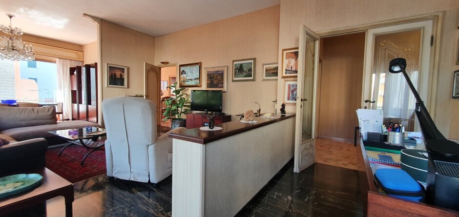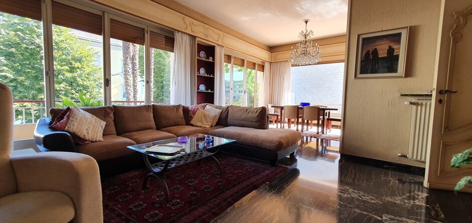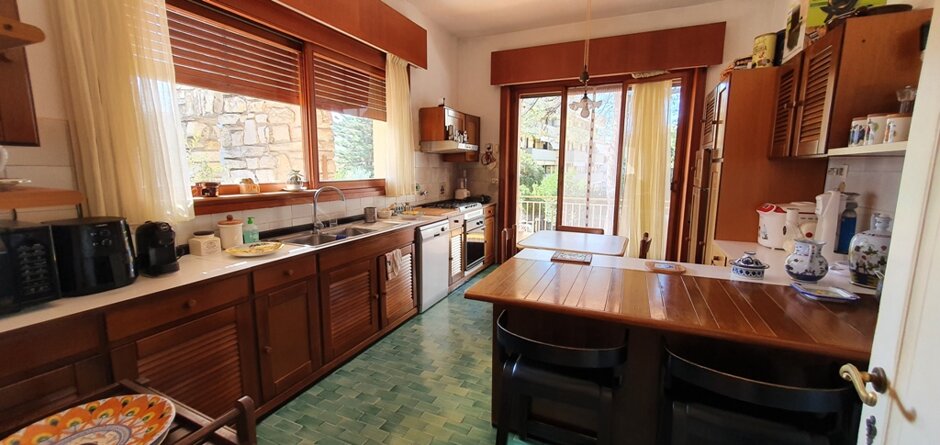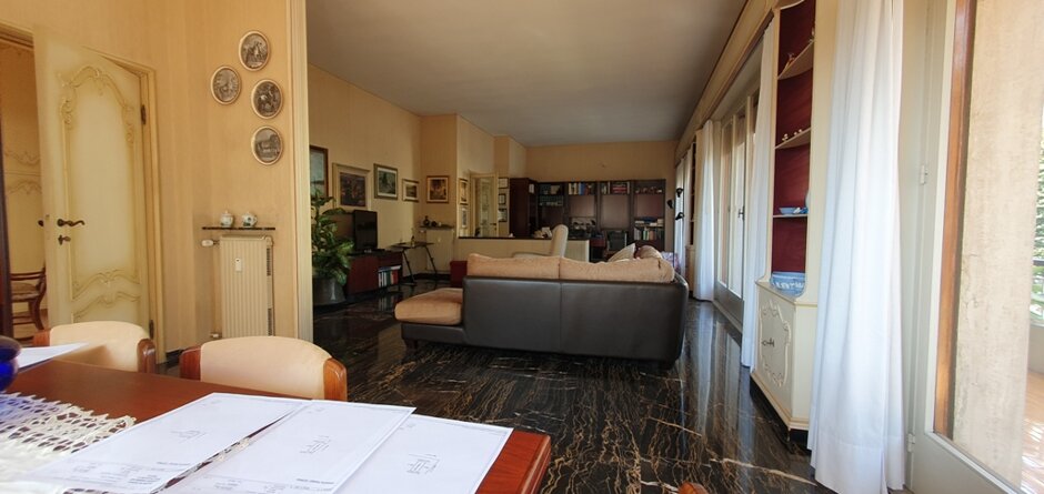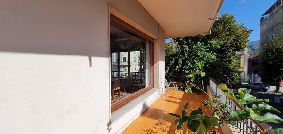 Affascinate Immobile in villa di architettura moderna in zona centralissima di Lavagna. Appartamento di 220 m. q. , disposto sull'intero piano, con ampi locali abitativi magnificamente illuminati da grandi vetrate perimetrali. Da tutti i locali si accede al terrazzo circostante vivibile di 120 m. q. sono compresi nella vendita una porzione di giardino sul fronte del fabbricato e un posto auto con accesso carrabile e cancello automatico. Possibilità ulteriori due posti auto